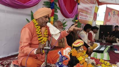 फोटो-13 मेला रामनगरिया के आदर्श क्षेत्र में कथा सुनाते स्वामी सत्यस्वसरूप ब्रह्मचारी। संवाद