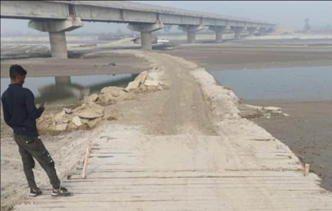Farrukhabad News: रेलिंग पोस्ट न लगने से पंटून पुल पर आवागमन में खतरा