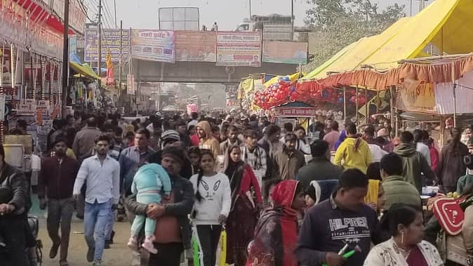 फोटो-22 मेला रामनगरिया के बाजार में उमड़ी भीड़। संवाद