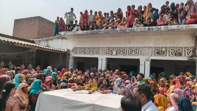 फोटो-23 गांव कलौली में हवलदार के घर के बाहर व छतों पर गमगीन खड़ी महिलाएं। संवाद