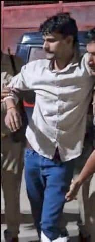 फोटो-1 गोली लगने से घायल हत्यारोपी सुरजीत को ले जाते पुलिस कर्मी। वीडियो ग्रैब