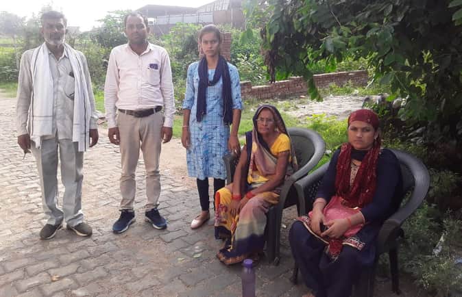 अमेठी कोहना में परिवार के साथ बैठी संजू देवी। संवाद