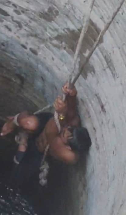 फोटो-09-कुएं से युवक को बाहर निकालते लोग। वीडियो ग्रैब