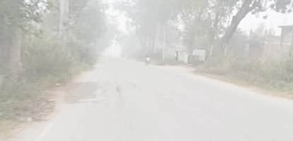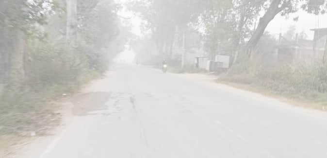 फोटो-16-गुरुवार की सुबह बांदा-सागर रोड पर छाई कोहरे की धुंध और पसरा सन्नाटा। संवाद