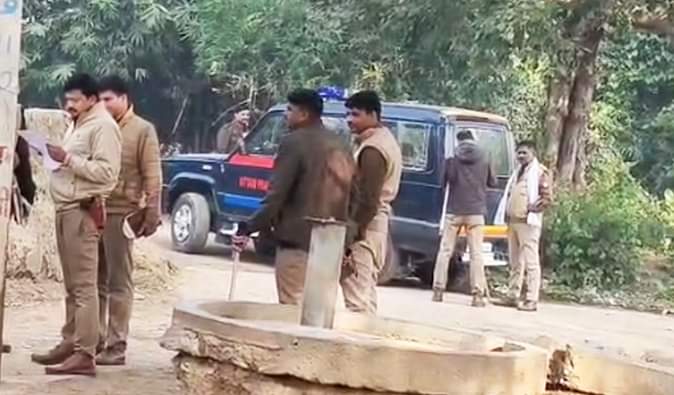 फोटो-36-गांव में मौजूद पुलिस बल। वीडियो ग्रैब- फोटो : दुर्घटना के बाद हाईवे से वाहनों को हटवाती पुलिस टीम