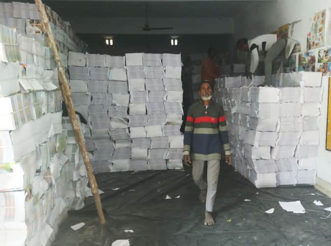 फोटो-05-महात्मा गांधी कंपोजिट विद्यालय में रखी गई पाठ्य पुस्तिकाएं। संवाद