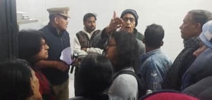 फोटो-35-मरच्युरी हाउस में परिजनों से बात-चीत करती पुलिस। वीडियो ग्रैब