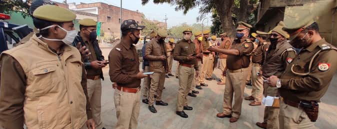 कोतवाली बिंदकी में पुलिसकर्मियों को प्रहरी ऐप डाउनलोड करवाते कोतवाल सत्येंद्र सिंह