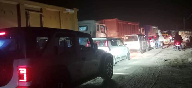 फोटो-18-देर रात लगे जाम में फंसे वाहन। संवाद