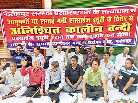 सर्राफा एसोसिएशन के जिलाध्यक्ष आनंद स्वरूप रस्तोगी की अध्यक्षता में सराफा व्यवसायी धरने पर बैठे। सराफा व्यवसायियों ने कहा कि आम बजट में स्वर्णकारों को दिक्कत हुई है, इसमें संशोधन होने चाहिए।