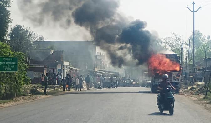 फोटो-23-शार्ट सर्किट से खड़े ट्रक में लगी आग। संवाद- फोटो : बंदी के कगार पर साइंस और ग्लासवेयर उद्योग, गैस का सिर्फ दो दिन का स्टॉक