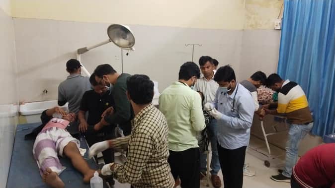 ट्रामा सेंटर में आग से झुलसे लोगों का उपचार करते चिकित्सक। संवाद