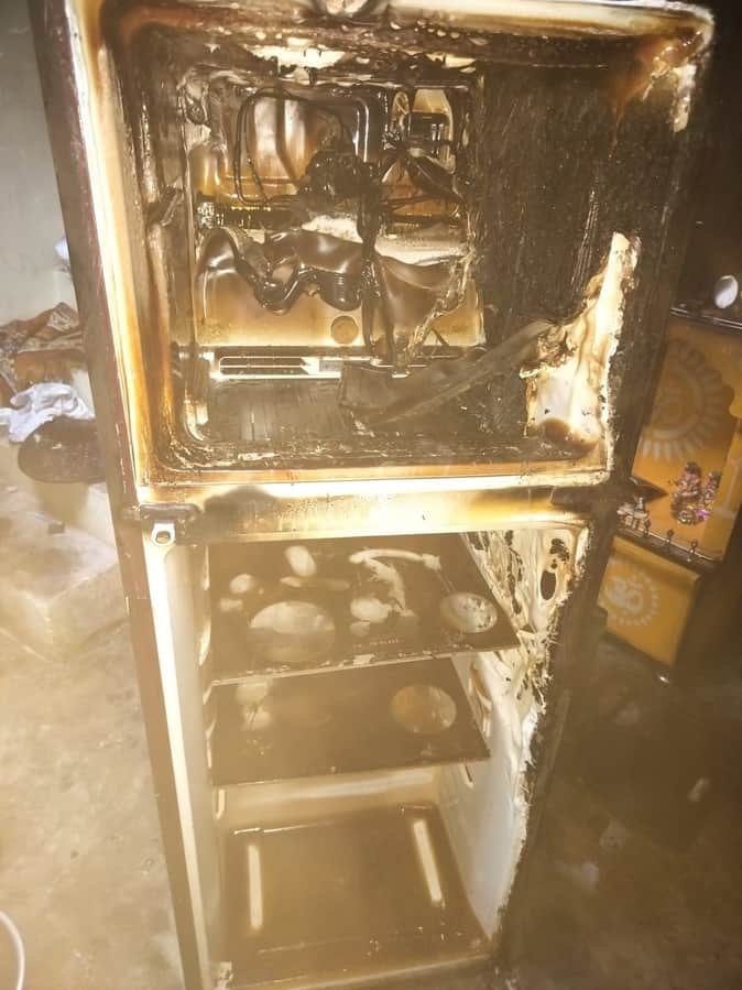 नारखी के बछगांव में घर में लगी आग में जला फ्रीज। संवाद