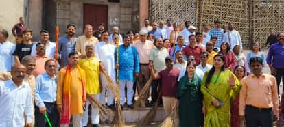 फिरोजाबाद। भाजपा के 46वें स्थापना दिवस पर रविवार को महानगर जिला अध्यक्ष डॉ. सतीश दिवाकर के नेतृत्व में कैला देवी मंदिर पर विशेष स्वच्छता अभियान चलाया गया। इस दौरान सदर विधायक मनीष असीजा और महापौर कामिनी राठौर ने कार्यकर्ताओं के साथ मिलकर मंदिर परिसर की सफाई की और स्वच्छ भारत का संकल्प दोहराया।