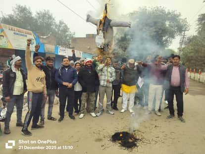 Firozabad News: हिंदू युवा वाहिनी ने जलाया बांग्लादेश सरकार का पुतला