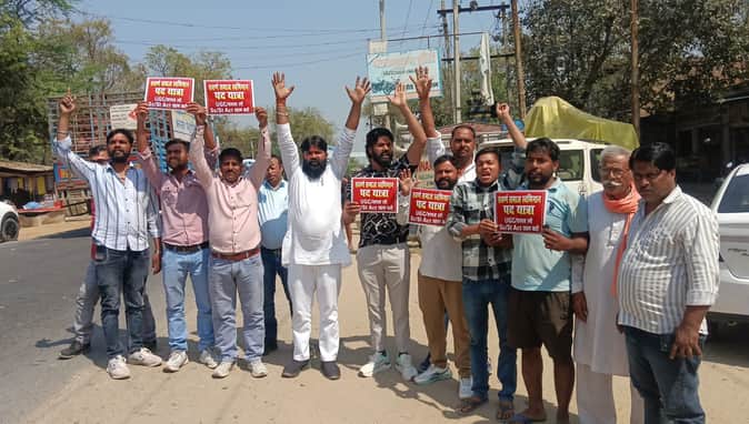 करणी सेना के पदाधिकारी यूजीसी का विरोध करते हुए। संवाद