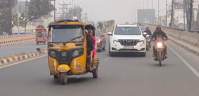 शीतलहर एवं कोहरे के कारण वाहन चालकों को दिन में लाइट जलाकर चलना पड़ा। संवाद