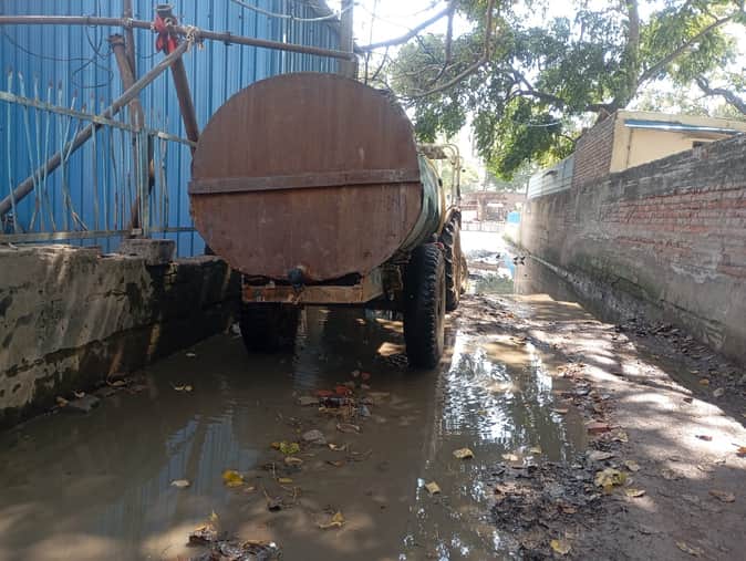 नगर निगम क्षेत्र में खड़ा जर्जर स्थिति वाला पानी का टेंकर। संवाद