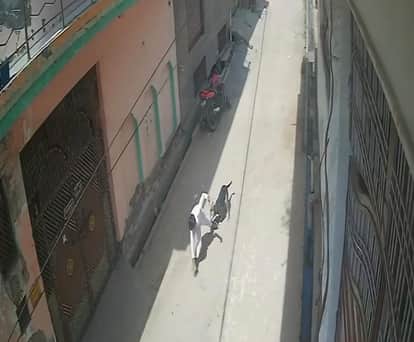 - फोटो : छात्र पर हमला करता पालतू कुत्ता। स्रोत सीसीटीवी