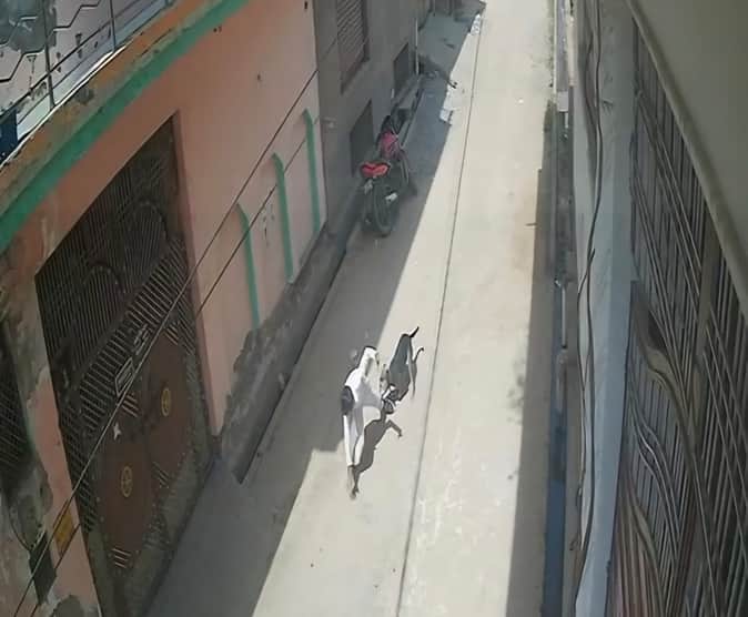 छात्र पर हमला करता पालतू कुत्ता। स्रोत सीसीटीवी