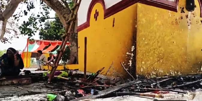 Firozabad News: दरगपुर में माता के मंदिर में नेजों में लगी आग, ग्रामीणों ने बुझाई