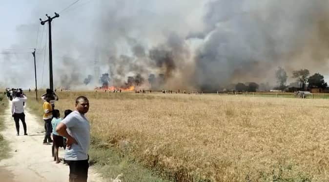 मुहम्मदपुर कुसुम गांव में गेहूं की फसल में लगी आग। संवाद
