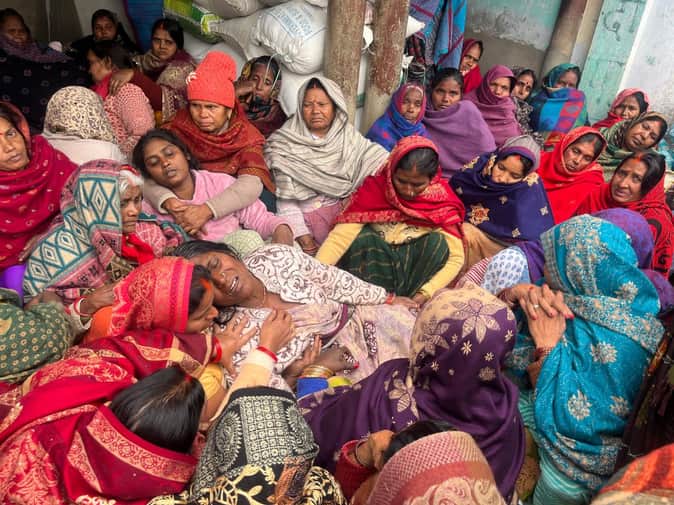 नगवां गांव में हिमांशु कुमार की रोती बिलखती मां लूटनी देवी और बहन किरण देवी व करिश्मा को संभालत