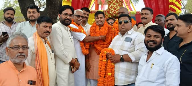 बहादुरगंज के चंडी धाम परिसर में भाजपा के जिला मंत्री बने मयंक राय का माल्यार्पण कर सम्मानित करत