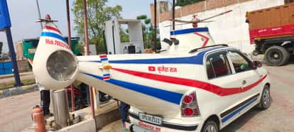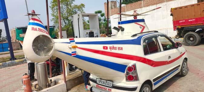 सुहवल पेट्रोल पंप पर खड़ी मॉडिफाइड हेलीकॉप्टर कार। संवाद