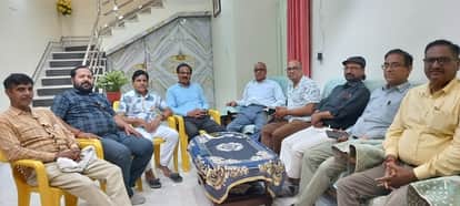 शहर के पीरनगर स्थित के पांडेय काॅलोनी में आयोजित साहित्य चेतना समाज की बैठक में बैठक में शामिल