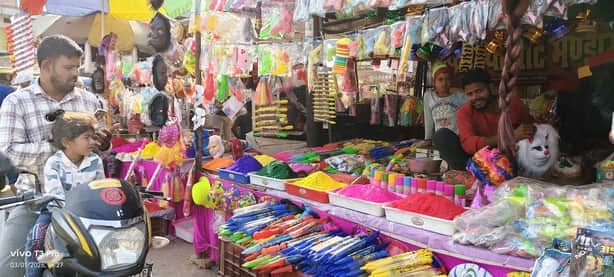 दुकानों पर रंग-बिरंगी पिचकारियां, कलर स्प्रे और अबीर-गुलाल के पैकेट सजे हुए हैं। कार्टून आकार की पिचकारियां बच्चों को खासा आकर्षित कर रही हैं। अबीर से भरे गुब्बारे उछालने पर रंगों की बौछार करते हैं। वहीं बेत के आकार की छड़ीनुमा पिचकारी से प्रेशर के साथ रंग निकलता है। इस बार मिसाइल पिचकारी भी बच्चों के बीच चर्चा का विषय बनी हुई है। बाजार में ब्रांडेड अबीर-गुलाल के पैक, हर्बल रंग, रंग-बिरंगे मास्क, टोपी और विभिन्न प्रकार के मुखौटे भी खूब बिक रहे हैं। दुकानदार राजेश, सूरज, विशाल और रामाशीष गुप्ता ने बताया कि इस बार मुखौटों की मांग सबसे अधिक है। टीवी पर लोकप्रिय कार्टून किरदारों के मुखौटे बच्चों की पहली पसंद बने हुए हैं। बच्चों में स्पाइडर मैन, डोरेमोन, मोटू पतलू, छोटा भीम और ड्रैगन के मुखौटे खासे लोकप्रिय हैं। कार्टून प्रिंट वाले कपड़ों की मांग भी बढ़ी है। अभिभावक बच्चों के साथ बाजार पहुंचकर खरीदारी कर रहे हैं।