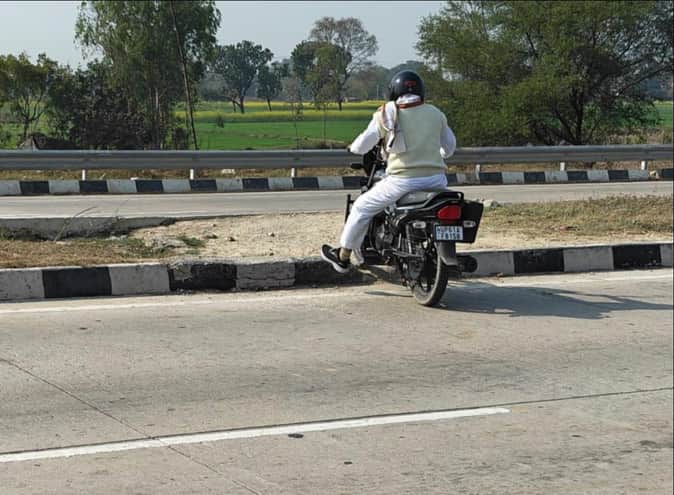 पलहीपुर गांव के सामने अवैध कट से जाता बाइक सवार। संवाद