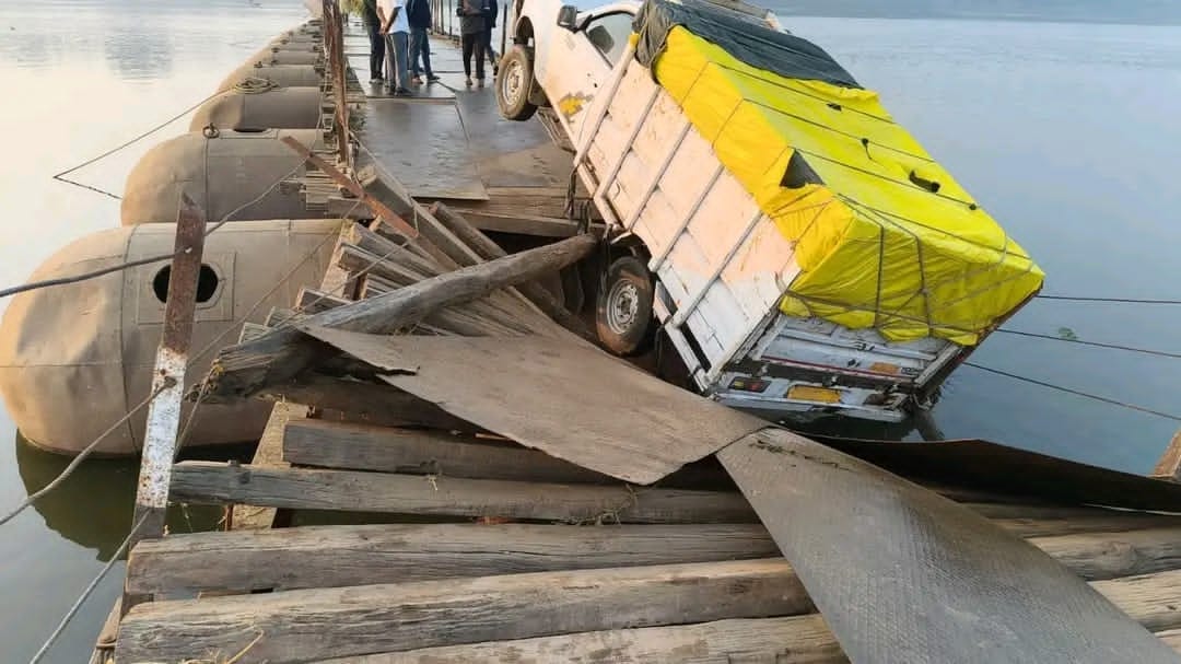 Ghazipur News: बारा फिरोजपुर पीपा पुल की लकड़ी टूटने से फिरोजपुर की तरफ से आ रही मवेशियों से भरी पिकअप फंस गई। इस दौरान चालक मौके से भाग गया।