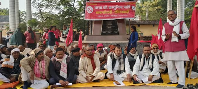 सरजू पांडेय पार्क में भाकपा के धरने को संबोधित करते वक्ता। संवाद
