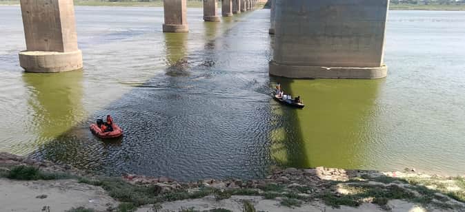 वीर अब्दुल हमीद सेतु के पास गंगा में खलासी बिट्ठल गुप्ता की तलाशी करती एसडीआरएफ व स्थानीय गोताख
