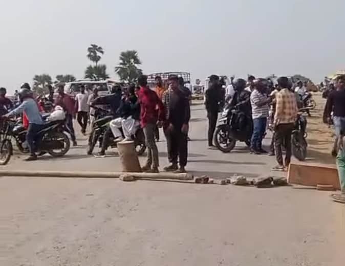 ओमप्रकाश यादव की मौत के बाद सुखदेवपुर चौराहे पर चक्काजाम करते लोग। स्रोत- वीडियो ग्रैब