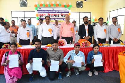 राजकीय आईटीआई में मंगलवार को आयोजित रोजगार मेले में मौजूद युवा और नियुक्ति पत्र के साथ प्रतिभा