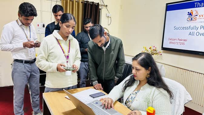 एलबीएस महाविद्यालय में साक्षात्कार में चयनित विद्यार्थियों को कंपनी का नियम व शर्त बताती कर्मी