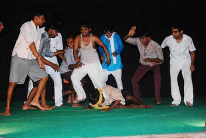 गोंडा में मंच पर अभिनय करते रंगकर्मी। फाइल फोटो