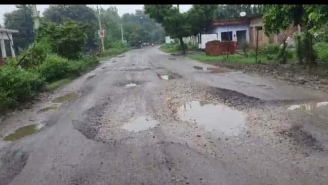 गोंडा में कटरा मार्ग पर सड़क पर गड्ढे।