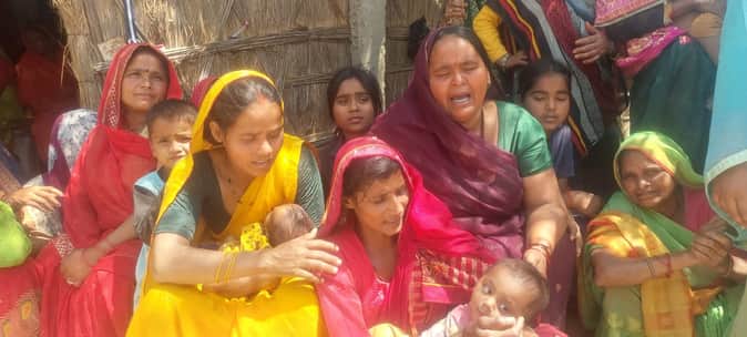 नवाबगंज के तुलसीपुर माझा गांव में रोते-बिलखते परिजन। - संवाद
