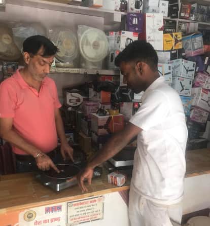 नगर में दुकान से इंडक्शन खरीदता युवक। - संवाद