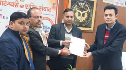 करनैलगंज का नाम बदलने को लेकर आयुक्त को ज्ञापन सौंपते अवध संस्कृति उत्कर्ष समिति के पदाधिकारी।