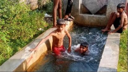इटियाथोक में गर्मी से राहत पाने के लिए ट्यूबवेल पर नहाते बालक। - संवाद
