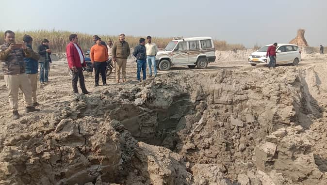 अवैध खनन से हुआ गड्ढा।