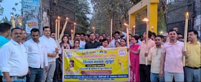गांधीपार्क से मशाल जुलूस निकालते यूनाइटेड टीचर्स एसोसिएशन के पदाधिकारी। संवाद