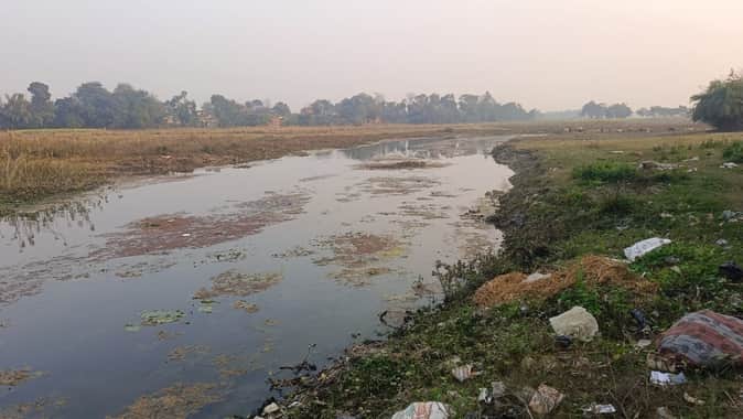 बालपुर में टेढ़ी नदी की बदहाल हालत। - संवाद