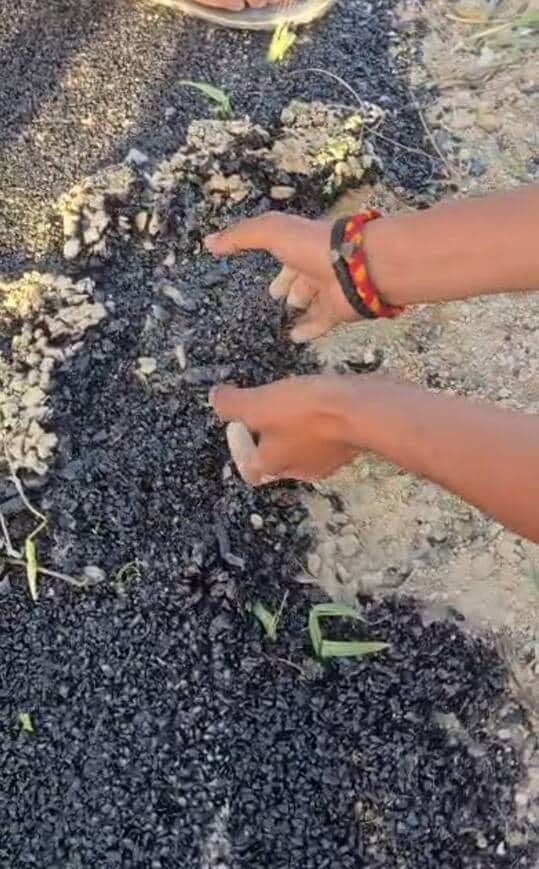 चकसड़ गांव में हाथ से उखड़ रही तीन दिन पहले बनी सड़क। स्रोत: वीडियोग्रैब