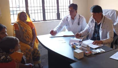 हलधरमऊ के बरांव पीएचसी में मरीजों का इलाज करते आयुष चिकित्सक। - संवाद