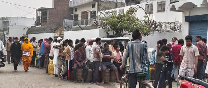 गैस के लिए एजेंसी के बाहर लग गई कतार।